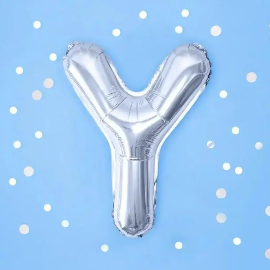 Ballon Buchstabe Y silberfarben aus Aluminium.