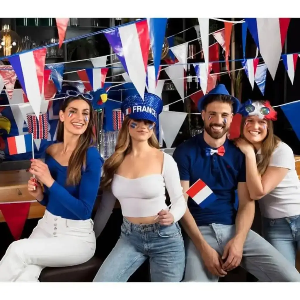Mit diesen Blau-, Weiß- und Rottönen auf Ihrer Haut werden Sie sich gut in die Stimmung der Party einfügen. Nach dem Kauf dieses Accessoires sollten Sie es eifersüchtig aufbewahren. Es wird Ihnen auch bei Ihrer Verkleidung für den Nationalfeiertag am 14. Juli oder beim Anfeuern der französischen Nationalmannschaft nützlich sein. Tragen Sie diese Schminke im Gesicht (Stirn, Wange usw.) oder auf dem Arm auf und zeigen Sie, wie sehr Sie Ihr Vaterland lieben!