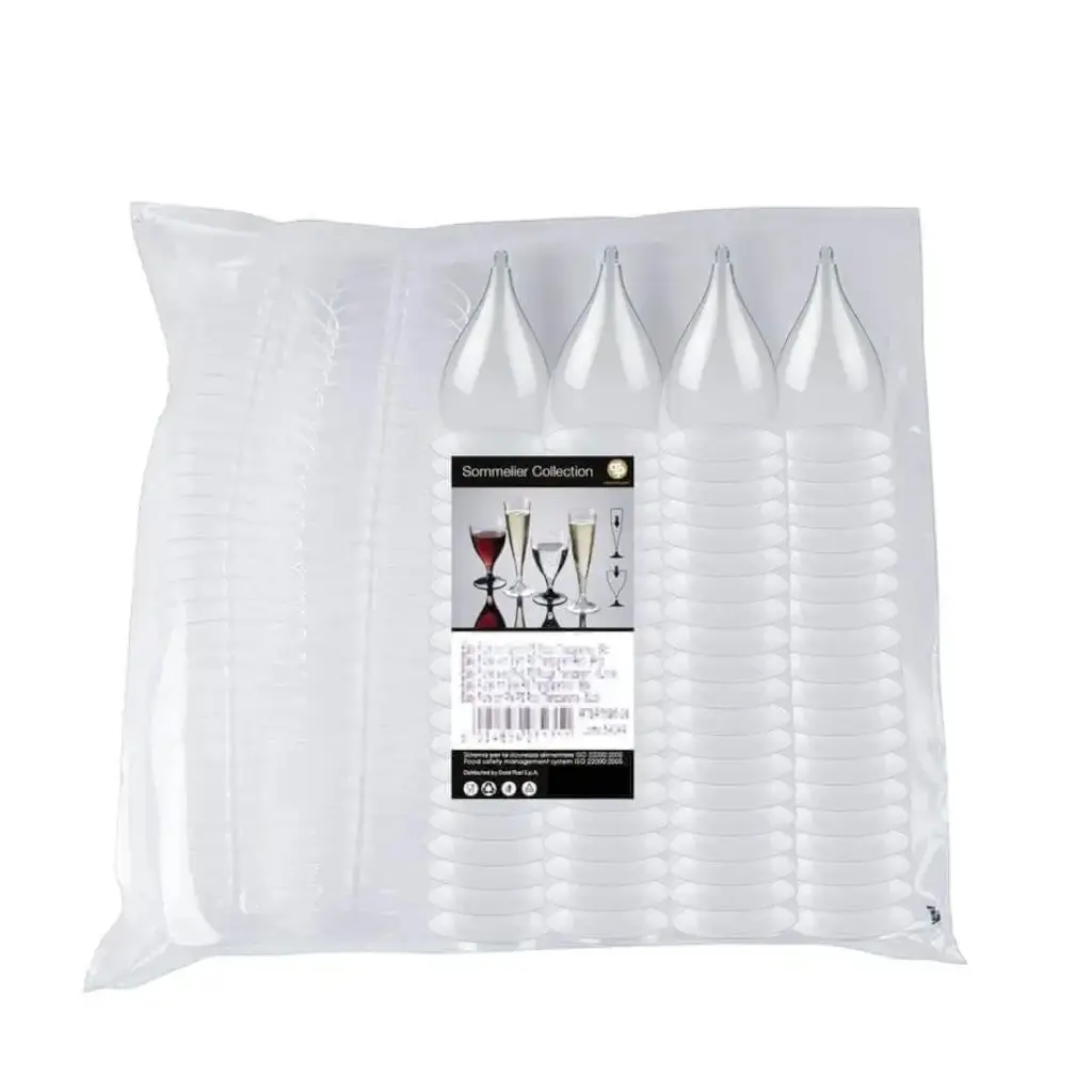Satz von 100 klaren Kunststoffweingläsern. Fassungsvermögen: 20cl.