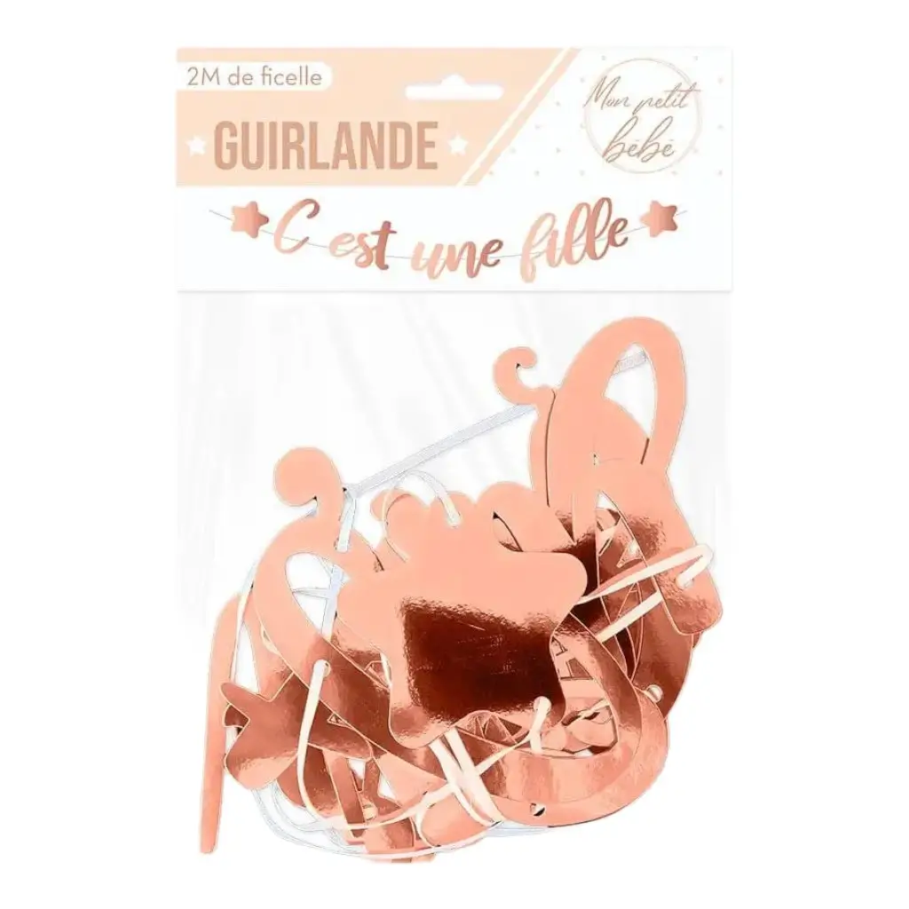 Eine wunderschöne, 2 m lange Girlande "Baby Shower" in der Farbe Rose Gold, die Sie für eine hübsche Baby Shower-Dekoration aufhängen können!
