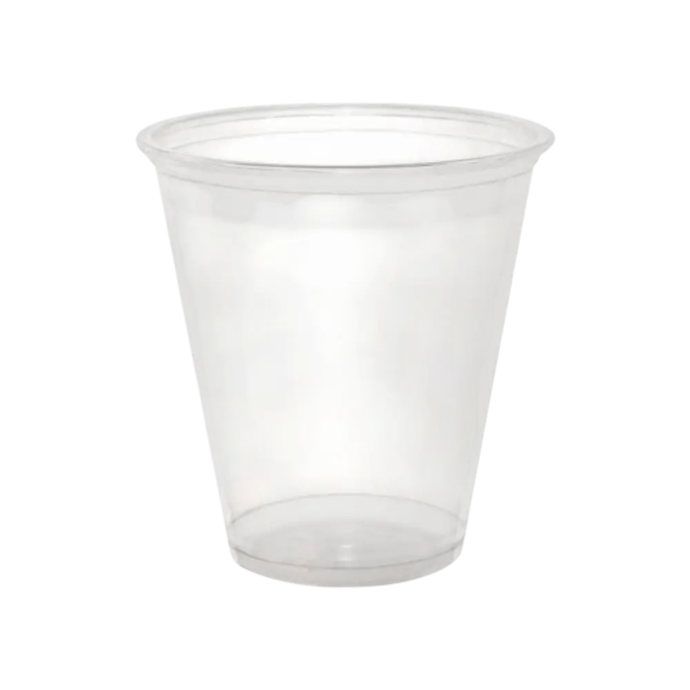 70 transparente Becher (20cl) aus recyceltem RPET-Material mit einer 20cl-Messung.